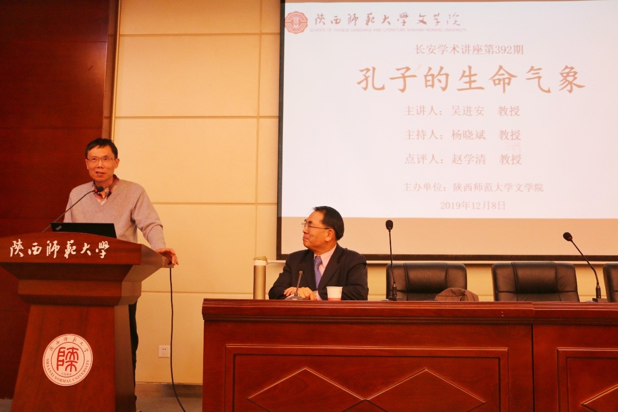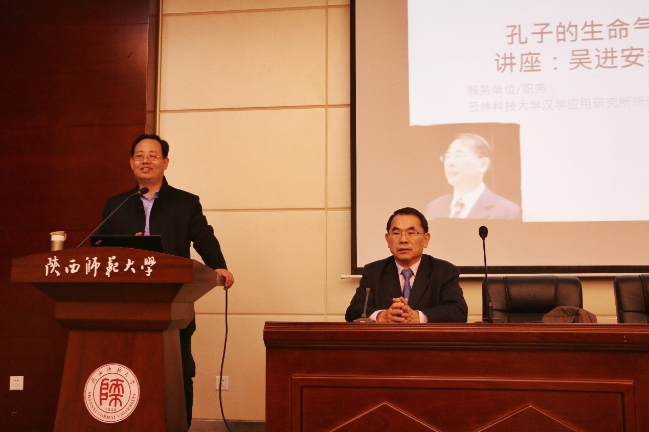 (通讯员:张彩云、陈雅妮    摄影:陈雅妮)应公司邀请,台湾云林科技大学吴进安教授莅临公司,于12月8日晚上在长安校区文汇楼A段111报告厅做了题为“孔子的生命气象”的学术讲座。讲座由杨晓斌教授主持、赵学清教授点评,公司王伟教授等老师和文字学、语言学及应用语言学、中国古代文学、古典文献学等专业的研究生参加了本次讲座活动。