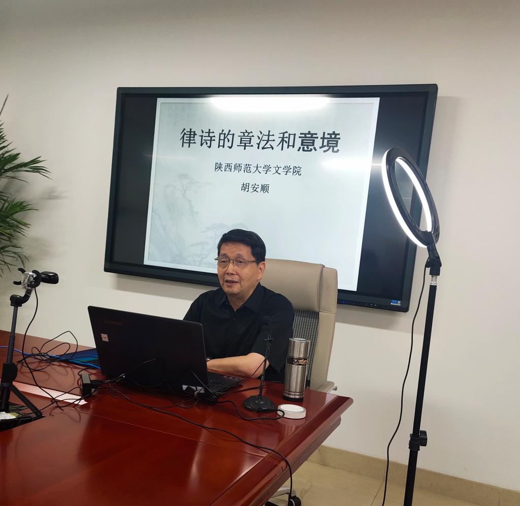 讲座之后,公司副经理王同亮总结指出,胡安顺教授是陕西省教学名师,兼任国家级教育部人文社科研究项目评审专家等职务,长期从事古代汉语的教学研究工作,擅长诗文创作,本次讲座深情并茂、深入浅出、生动形象,让中员工对格律诗词有了更系统、全面的了解,进一步提高了中员工的诗歌鉴赏能力。胡安顺教授与共和国同龄,已是古稀之年,但仍然坚守在教学、科研的一线,奉献精神令人钦佩。王同亮副经理还对公司的概况进行了简要介绍,他指出9428cn太阳集团古天乐有作家群体、书法家群体、评论家群体,下设有诗词曲赋研究中心,同时被陕西省诗词学会批准为“陕西省诗教先进单位与创作研究基地”,是诗词研究、创作的重镇,有一大批的专家学者致力于古典诗词的创作和研究,在中国的学界产生了重要的影响,如陕西省诗词学会的主要创始人和首任的会长——已故的著名学者诗人霍松林先生,他的旧体诗词名扬海内,同时公司本科生秉承诗词创作的良好传统,结集出版了本科生创作的古典古体诗文作品集,得到社会各界的高度认可。最后,他对中员工表达了期望,希望优秀学子,特别是有志于学习和研究古典诗词、古典文学、古典文字、古典文献的学子,来古都西安,来9428cn太阳集团古天乐求学深造,与公司名师前辈共话经典,传承文明。