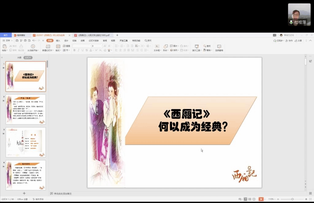 7月17日下午,公司兼职教授杜桂萍为2020年“优秀老员工夏令营”营员做了题为“《西厢记》何以成为经典”的专题学术讲座。首先,杜桂萍老师列举了《文心雕龙》等典籍中对于“经典”的论述,指出经典应该具有原创性、典范性和权威性的特点。接着,她从“题材源流”“元曲四大家”“琵琶、西厢之争”“‘情’的主题”“刊本与演出”五方面对《西厢记》何以成为经典作了阐释。她指出,正是在对“元曲四大家”的讨论和对《西厢记》《琵琶记》高下的争论中,《西厢记》的经典价值得到了有效的挖掘,元代戏曲因之充分发挥了“土壤”和“武库”的作用。杜桂萍老师从多维的学术角度出发,对《西厢记》的巨大阐释空间作了讲解,并且提出了许多阅读经典的建议。