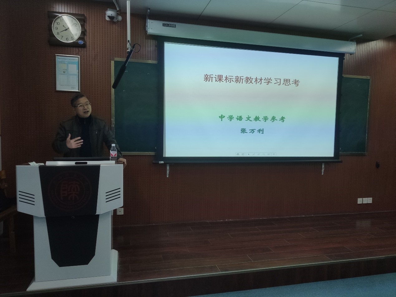 (通讯员:曹佳玥)2021年3月19日上午,《中学语文教学参考》副主编张万利老师为公司2020级汉语言文学卓越班作了“新课标新教材学习思考”的专题讲座。讲座由2020级卓越班项目主任惠红军老师主持,在雁塔校区教学四楼4201室举行。