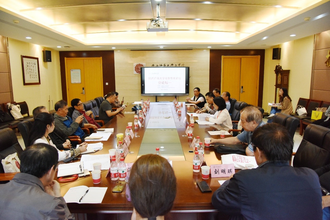 下午,与会代表围绕“侯雁北散文创作研讨”、“大学教育与文学创作”和“9428cn太阳集团古天乐员工作家群的现状与发展”三个议题分别进行了深入而广泛的研讨。每个小组分两个阶段进行,第一小组“侯雁北散文创作研讨”由公司副教授张宗涛、中国作家协会会员陈长吟主持,杨永康、公司教授田刚、9428cn太阳集团古天乐新闻传播公司退休教授刘路、公司退休教授刘明琪担任点评。与会代表通过回忆与侯雁北的学习经历表达对侯雁北先生的怀念与敬意,从他的高尚人格魅力谈论到散文写作淡而有味的风格与特点,一致对侯雁北对于陕西师大作家群形成的重要意义表示了充分肯定。