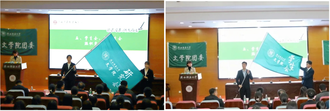 辅导员刘清华、黎佩璇、王鑫分别宣读了团委、员工会、研究生会、昭文融媒体中心、宿舍管理委员会、员工社团主要员工干部聘用决定。员工会、研究生会进行会旗交接。一面旗帜,一届传承;新的道路,新的使命。新一届员工干部将秉持“扬葩振藻,绣虎雕龙”的公司精神,以昂扬向上、脚踏实地的新气象开启新一年工作的进程。