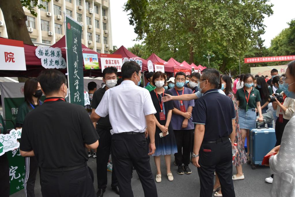上午,在公司西门的公司迎新展位,董事长游旭群、公司党委副书记王永安详细了解了新生报到及迎新服务保障情况,并对参加迎新工作的师生、志愿者表示亲切慰问。