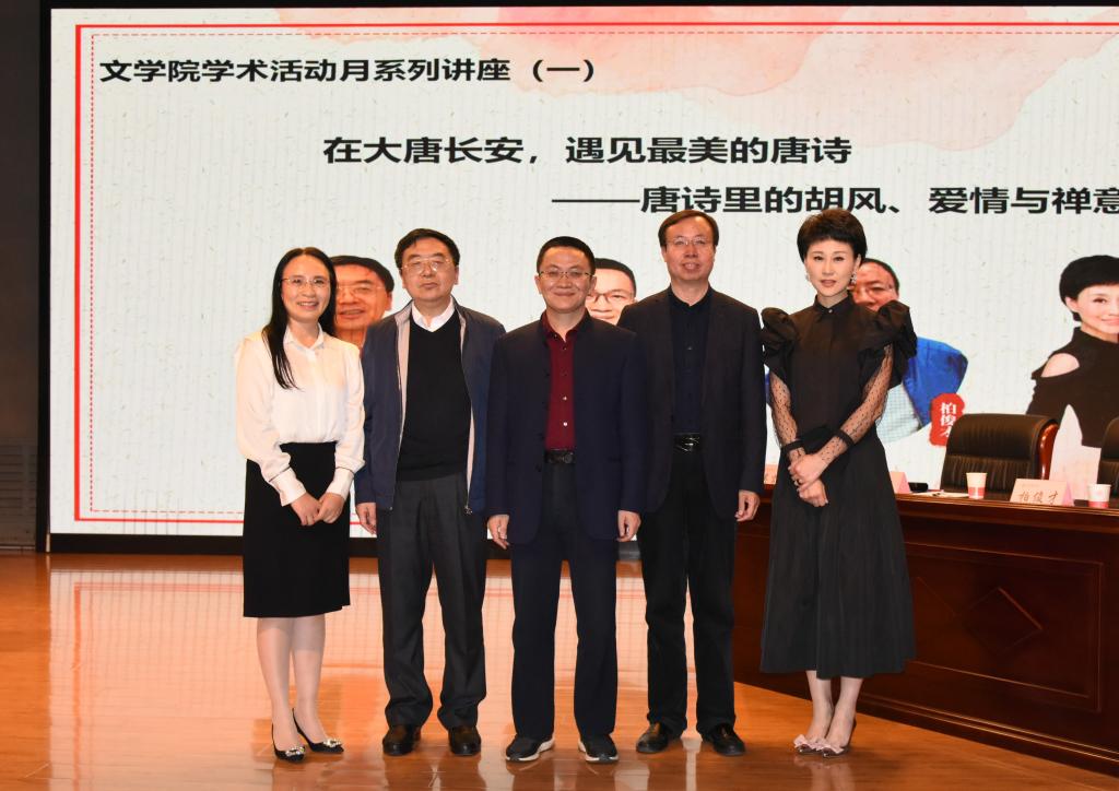 开幕式结束后,学术活动月首场学术报告“在大唐长安,遇见最美的唐诗——唐诗里的胡风、爱情与禅意”开始。西北大学李浩教授,公司柏俊才教授和吴言生教授分别作报告。报告由郝靖女士主持。