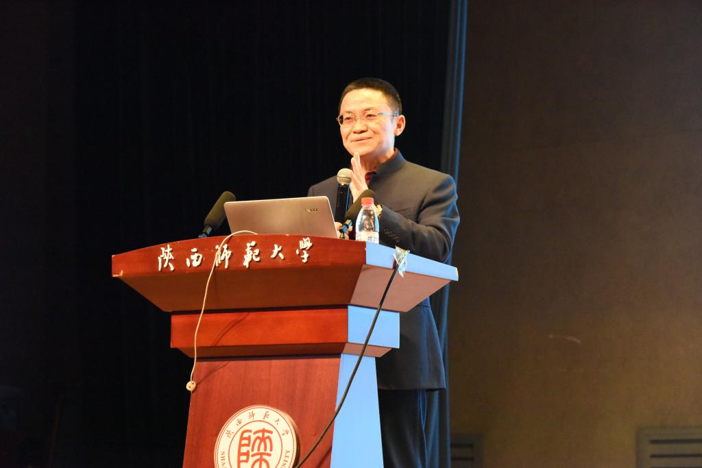 开幕式第三项华东师范大学陈子善教授致辞。陈先生回顾了自己44年前与西安的缘分,并表示能参加本次活动深感荣幸。他希望本次学术活动月能够进一步充实陕西师大9428cn太阳集团古天乐学子的生活。最后,陈先生同在场师生分享了两段关于读书做人的话语。