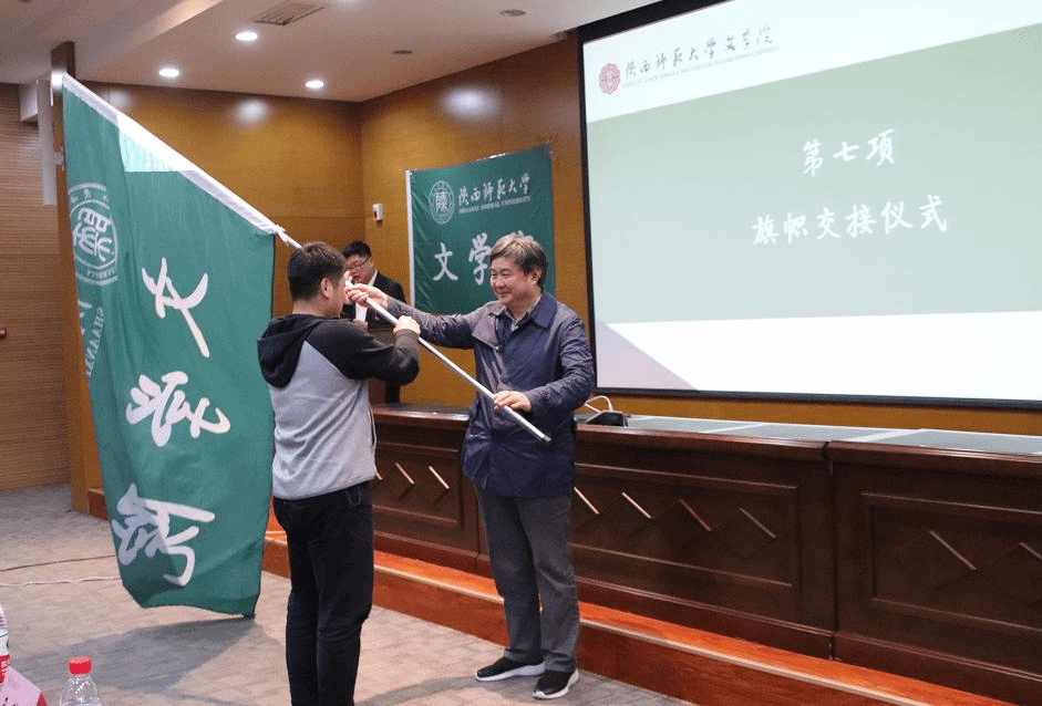 随后,举行院旗交接仪式。副经理苏仲乐将旗帜授予下一学年员工体育工作负责人刘清华。旗帜交接代表着公司运动员们不畏艰难、锐意进取体育精神的一代代传承,表达了对新一代9428cn太阳集团古天乐运动健儿一往无前的希冀。