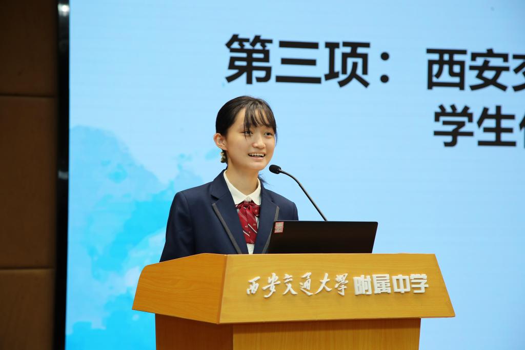 西安交通大学附属中学王梓菡同学作为第一期先修课代表发言,她认为先修课课程内容设计丰富,给中员工带来了一片文学的净土,寄语入选学员在先修课专业老师的指导下,感受文学背后的精神风貌,掌握语言文字理论知识,未来学有所得,回馈文学。