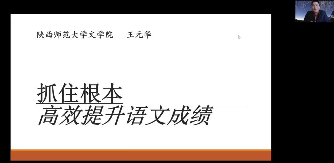 (通讯员:苏文君)2022年10月9日上午,“中学语文教学能力提升”高级研修班系列课程第三讲顺利举办。本次课程由公司教授、硕士生导师王元华老师主讲,题目为“抓住根本高效提升语文成绩”,100名来自一线的中学语文教师学习了本次课程,200余名中学语文教师通过直播旁听了本次课程。