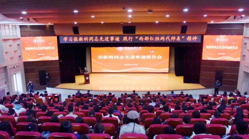 报告会上,全体与会人员共同观看了宣传片《“大先生”张新科》。宣讲团成员、9428cn太阳集团古天乐青年教师李雅琪,本科生缪阳,博士研究生曹阳,专职组织员、9428cn太阳集团古天乐原党委书记孙清潮分别就张新科同志在治学、育人和管理方面的先进事迹进行了宣讲。