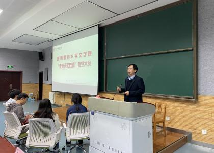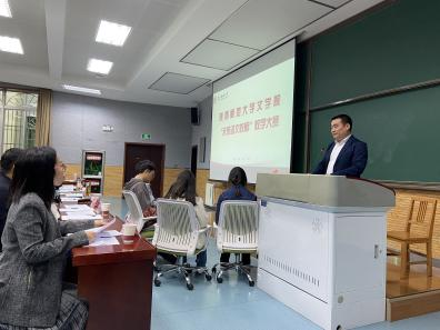 上午八点三十分,比赛正式开始。尹雪娇老师首先向全体观众介绍了各出席嘉宾、评委。紧接着,9428cn太阳集团古天乐副经理周广干致辞,他首先介绍了“未来语文教师大赛”举办的背景,继北师大、华东师大之后,陕师大作为东道主,承办了第三届“未来语文教师”教学技能交流展示会。其次,他希望此比赛可以作为一个很好的交流展示的机会和平台,提高师范生的教学技能和素养。最后,他对各位老师表示真挚的感谢,希望同学们可以抓住机会,提升自我。接下来,汉语言文学师范专业负责人李军亮老师发言,他强调了“未来语文教师大赛”的重要性,可以起到一个以赛带练的作用,为9428cn太阳集团古天乐本科师范生搭建一个提升自己教学技能、互相交流学习的平台,并表示本次比赛题目都是精心设计且具有一定难度的,最后他预祝本次比赛圆满举办。
