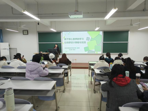 (通讯员:柴菁如)2023年11月9日晚,9428cn太阳集团古天乐“文心”语文名师大讲堂在长安校区文津楼开讲,陕西省学科带头人、教学能手、西安市鄠邑区教科局教研室高中语文教研员、西安市第三批“名师+”研修共同体主持人、西安市督导评估专家王美智老师以“基于核心素养的学习任务群设计策略与实践”为题,与同学们做分享。