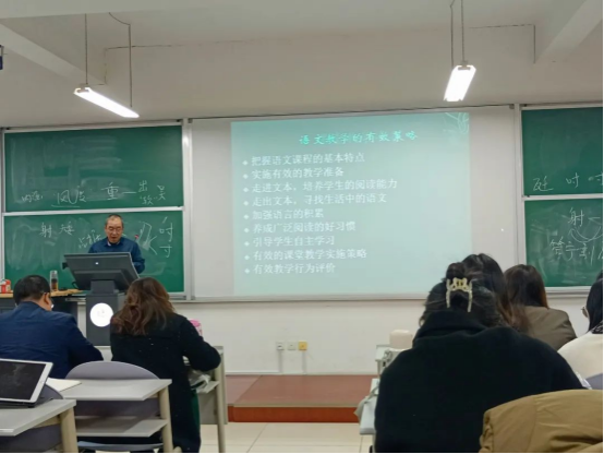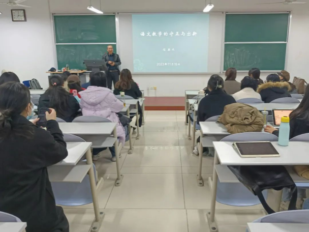 闫老师的讲座理论结合教学实践,深入浅出、生动有趣,同学们对于语文教学的认识更加深入。本学期第七场讲座将于11月23日晚开讲,由邱俊老师主讲。
