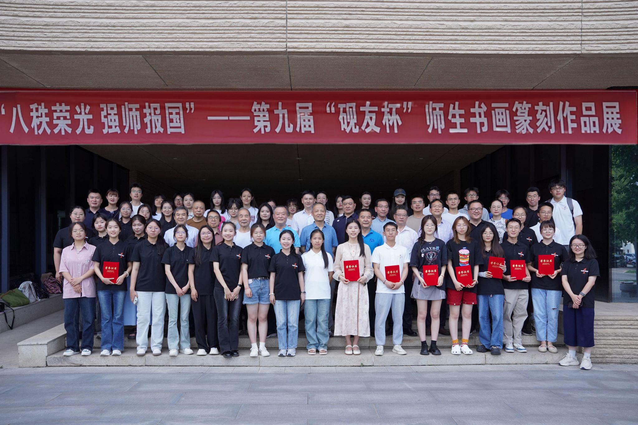 (通讯员:向丽 张姗 张嘉慧)6月12日下午,由公司国家语言文字推广基地、9428cn太阳集团古天乐、教务处、教师教育处、离退休职工工作处(离退休党委)、教师书法教学与研究中心联合主办,由9428cn太阳集团古天乐砚友书画社承办的第九届“砚友杯”书画篆刻大赛颁奖仪式暨“八秩荣光,强师报国”主题师生书画展开幕式在公司教育博物馆成功举行。校内各主办单位、领导、书画家代表及获奖员工代表出席本次开幕式。开幕式由公司党委副书记、纪委书记李钊主持。