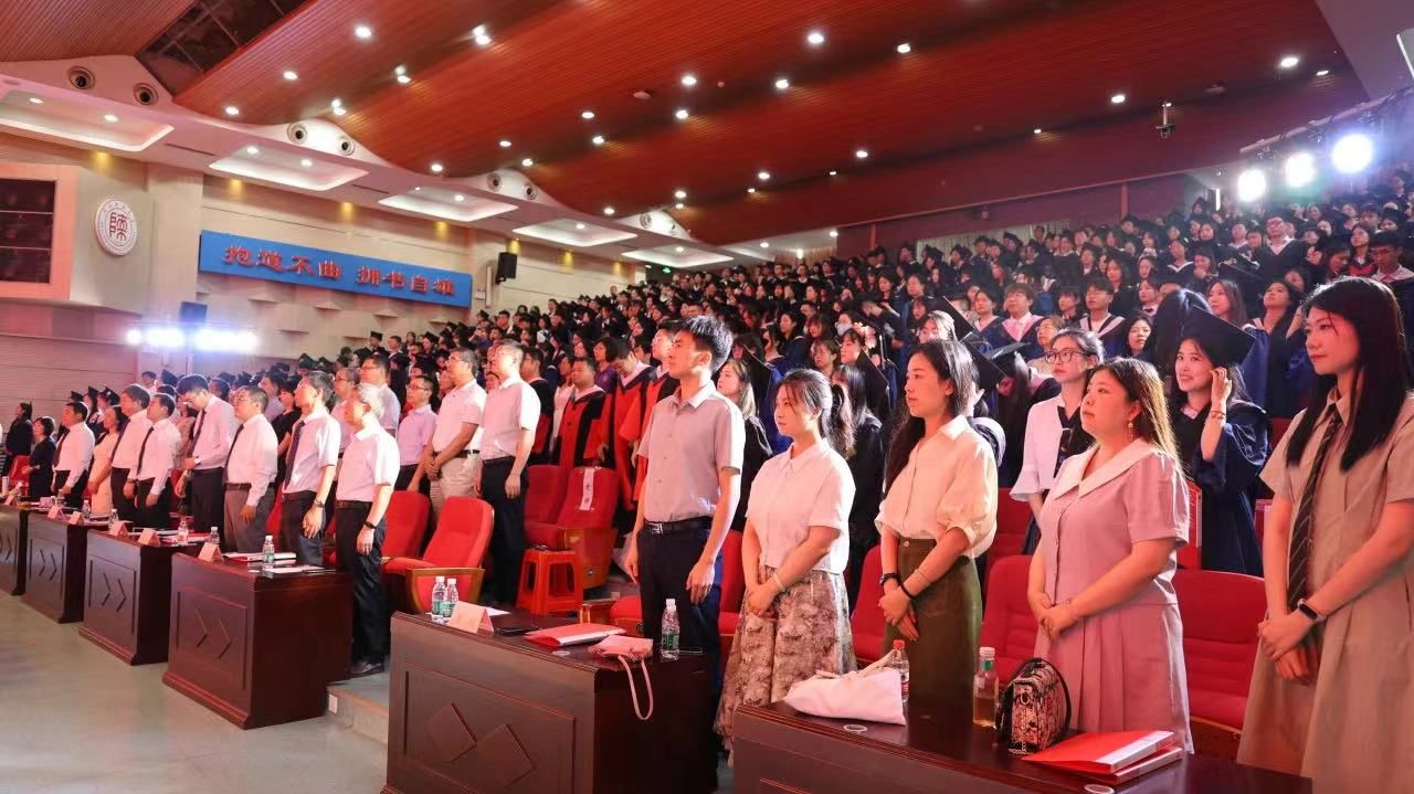 2024届本科生陈瑾带领全体毕业生宣誓,誓言铿锵有力,透露着对未来的坚定和执着,表达了不忘初心、持续奋斗的决心。