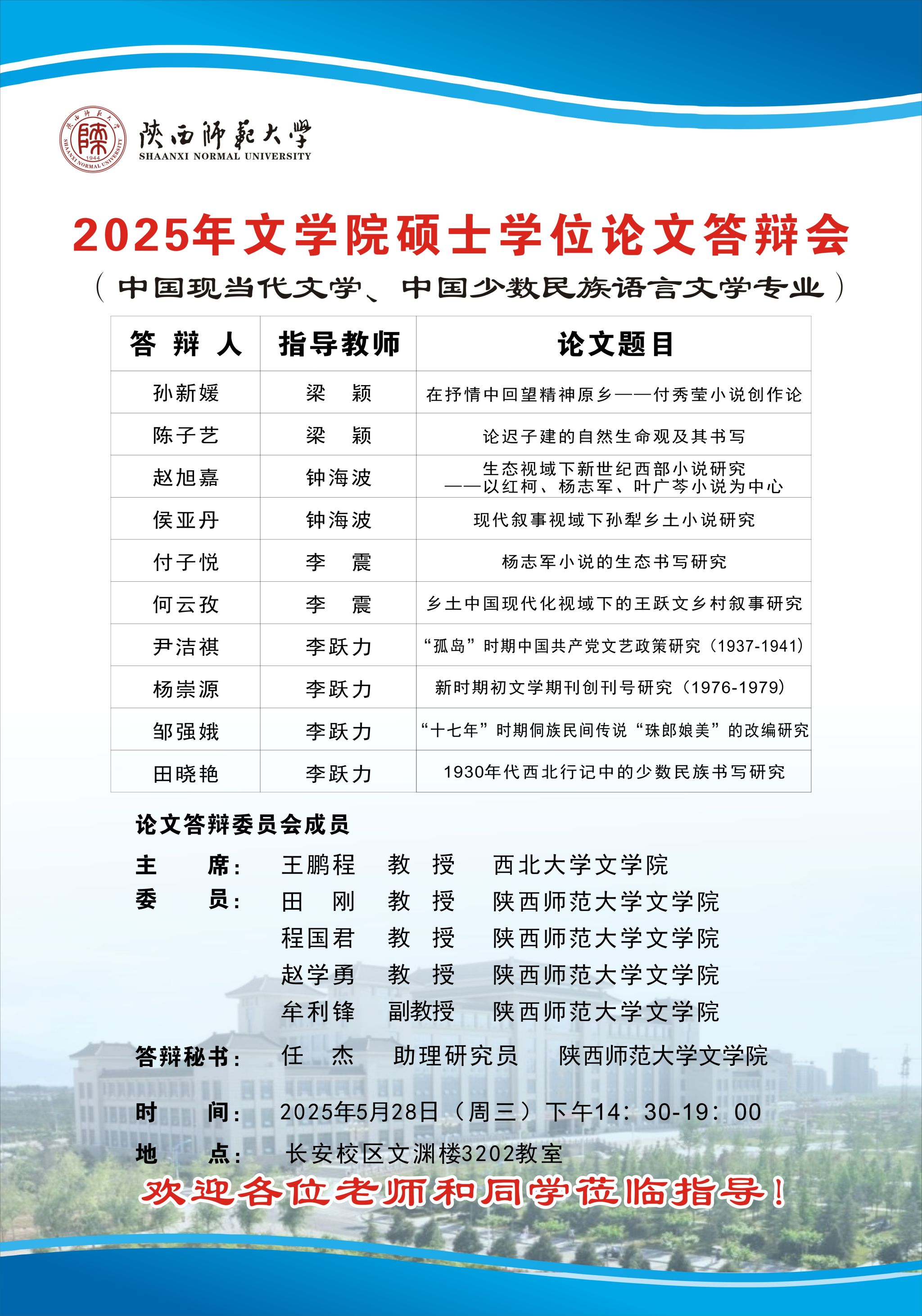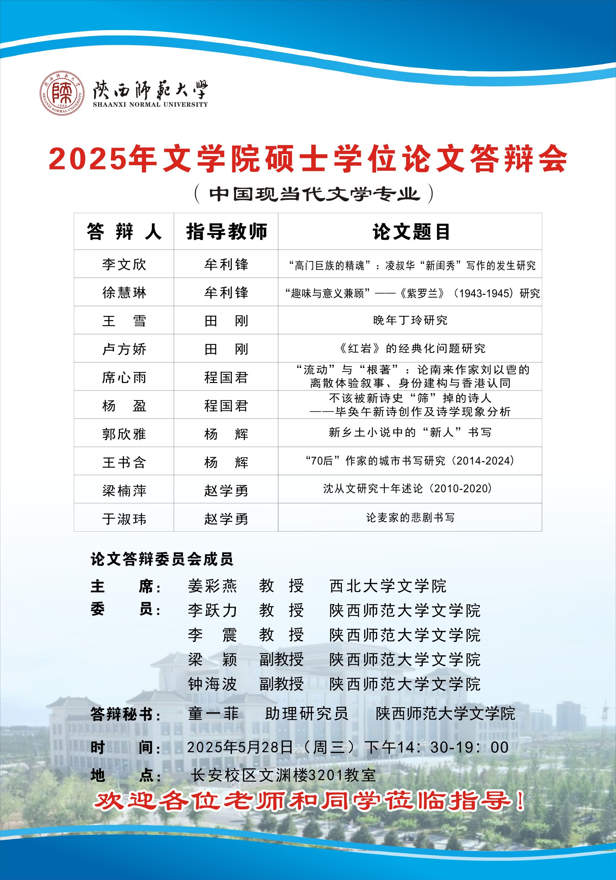 2025年上半年9428cn太阳集团古天乐硕士学位论文公开答辩会(中国现当代文学)