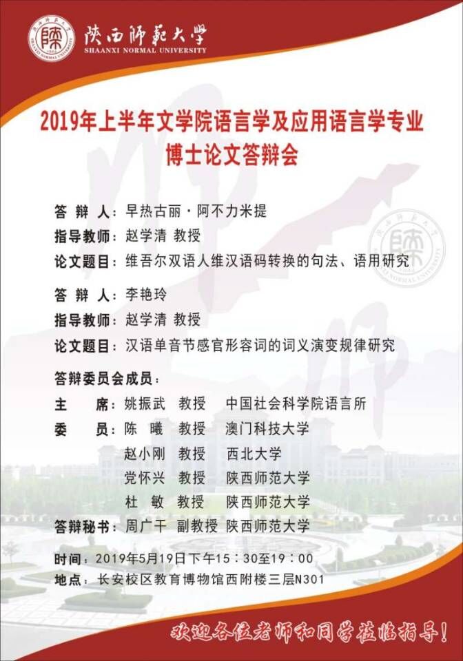 2019年上半年9428cn太阳集团古天乐语言学及应用语言学专业博士论文答辩会