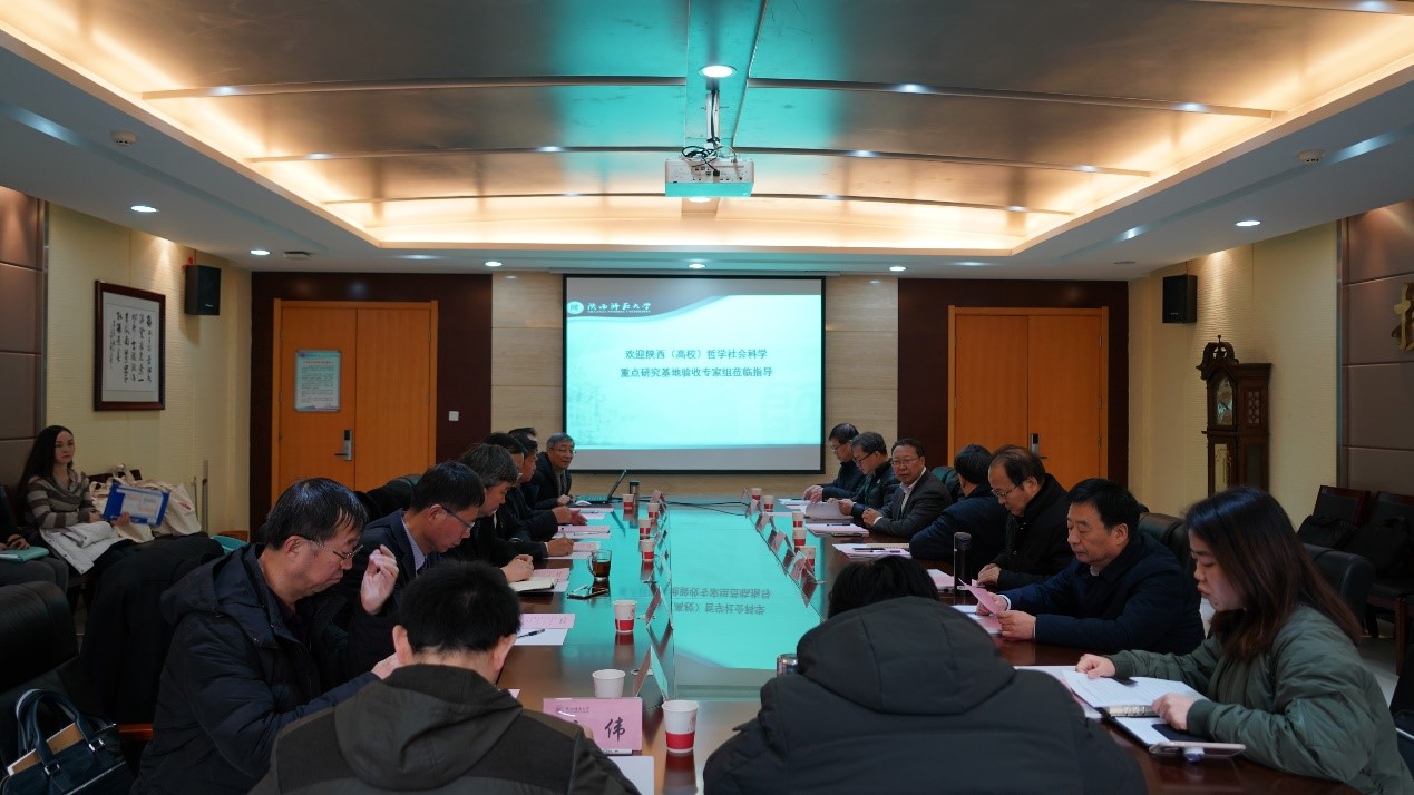 9428cn太阳集团古天乐语言资源开发研究中心为陕西(高校)哲学社会科学重点研究基地,于2015年由陕西省教育厅批准立项建设,于2017年入选中国智库索引(CTTI),2018年正式挂牌成立。主任由教育部特聘教授邢向东担任。该中心自成立以来,在语言研究,尤其是汉语方言调查研究、中国语言资源保护工程中做出了重要贡献,成为中国语言研究领域的重镇。图为基地通过验收时拍摄。