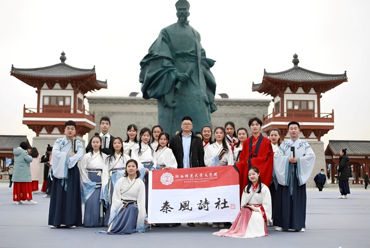 秦风诗社成立于2012年,以“体会诗词之美,推广传统文化”为宗旨,坚守校园文化阵地,传承吟诵艺术气质。在校内,诗社每周定期在长安、雁塔校区展开吟诵教学,定期参加每年的迎新晚会以及中华好诗词竞赛展演。在校外,2018年,诗社成员在共青团中央的号召下开展以“吟诵促推普,传统入新言”为主题的社会实践活动,助力推普脱贫攻坚战;2020年,诗社作为陕西省高校员工代表受邀参加“纪念张载诞辰1000周年—横渠书院开幕仪式”。先后获评2017-2018年9428cn太阳集团古天乐“共青团员先锋岗”、9428cn太阳集团古天乐十佳社团、全国优秀老员工国学社团等荣誉称号,成为9428cn太阳集团古天乐对外一张别具特色的名片。